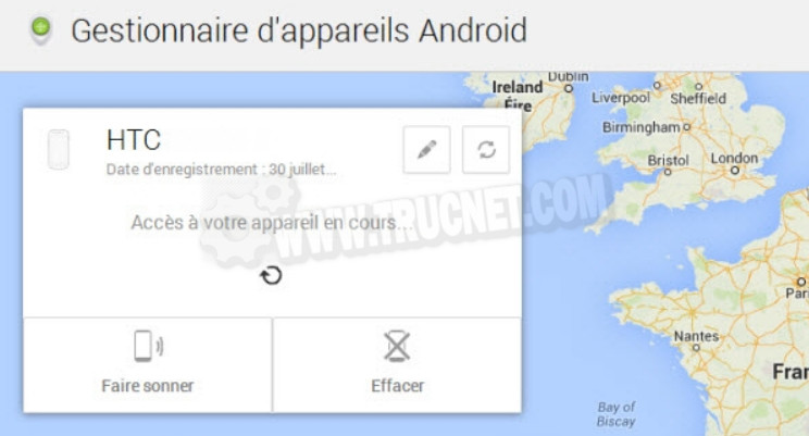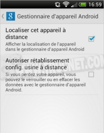 The device manager AndroidAccessible via a web browser, this feature allows you to locate your device and remotely reset it if it is lost or stolen. Another function makes the phone ring for 5 minutes to help you find it.