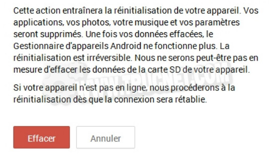 You then have two options: locate your device remotely to determine its approximate position. Androidand a second option that allows you to remotely erase all the data on the device: