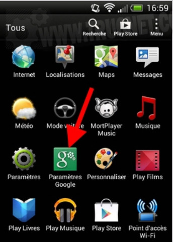To begin, go to the menu of all your applications and open the application " Google settings »: