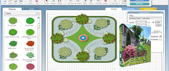Garden Planner est une application facile à utiliser qui est conçue pour la conception de jardins et la conception de paysage. Avec l’aide du programme, vous pouvez facilement créer votre propre jardin de rêve. Il existe une bibliothèque intégrée de plus de 1200 plantes et objets, où tout élément peut être personnalisé par l’utilisateur à sa discrétion. Des outils de dessin faciles à utiliser sont disponibles qui vous permettent de créer des trottoirs, différents types de planchers, chemins, murs, clôtures, piscines, étangs, etc.