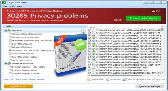 Le nettoyage des dossiers d’activité informatique prend beaucoup de temps, mais il existe des applications qui peuvent vous aider dans ce domaine. L’un d’entre eux s’appelle Glary Tracks Eraser, il est capable de supprimer les traces d’activité et de navigation Internet générées, visant à protéger votre vie privée et vos données.