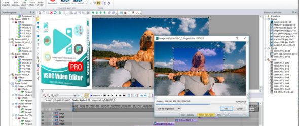 Cet éditeur est un outil non linéaire. Cela signifie que, contrairement à la plupart des autres éditeurs, où les scènes se superposent dans une séquence et dans un ordre déterminés, le logiciel permet aux objets d’être placés à n’importe quelle position sur la timeline et de n’importe quelle taille. En outre, divers paramètres, la forme et la position des objets peuvent changer arbitrairement dans le temps.
